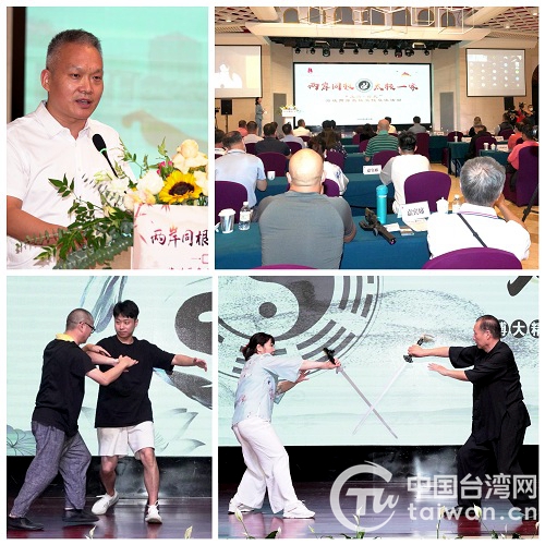 著名太極拳大師楊澄甫的嫡孫太極名家楊志芳,著名太極名家陳微明大師嫡孫、楊氏太極拳第五代傳人陳文誠,閔行區(qū)楊門濮傳太極拳俱樂部理事長王鴻義,臺灣太極名家趙烈儉、葉淑華、宋承瀚教練分享交流了太極文化。兩地還互動表演了太極劍、太極刀、太極推手等精彩節(jié)目。