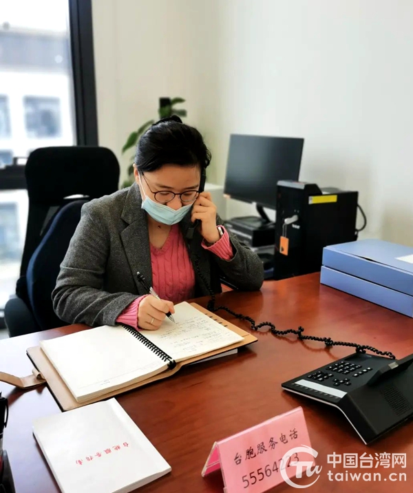 接聽臺胞服務電話(圖片來源:北京市臺辦)