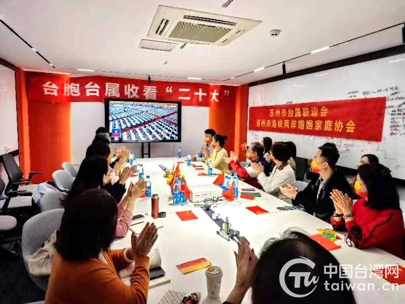 蘇州市臺屬聯(lián)誼會、蘇州市海峽兩岸婚姻家庭協(xié)會組織臺胞臺屬集中收看二十大開幕會(圖片來源:江蘇省臺辦)