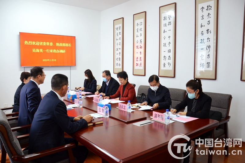 中國(guó)臺(tái)灣網(wǎng)11月14日訊 近日,吉林省委常委、統(tǒng)戰(zhàn)部部長(zhǎng)吳海英到省委臺(tái)辦走訪調(diào)研,全面了解全省對(duì)臺(tái)工作情況,并與省委臺(tái)辦領(lǐng)導(dǎo)班子和機(jī)關(guān)干部圍繞學(xué)習(xí)貫徹黨的二十大精神開(kāi)展座談交流。