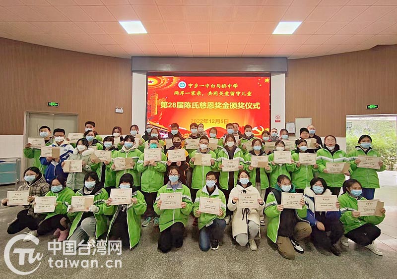 中國臺(tái)灣網(wǎng)12月12日訊 第28屆陳氏慈恩獎(jiǎng)助學(xué)金頒發(fā)儀式近日在湖南省寧鄉(xiāng)一中白馬橋中學(xué)圓心報(bào)告廳隆重舉行。“陳氏慈恩獎(jiǎng)學(xué)金”是由湘籍臺(tái)胞陳智華先生代表其家人設(shè)立,獎(jiǎng)金來自其父陳邦榮先生在臺(tái)灣為獎(jiǎng)勵(lì)湘籍學(xué)生而設(shè)立的“陳氏慈恩獎(jiǎng)學(xué)基金會(huì)”,用于獎(jiǎng)勵(lì)白馬橋中學(xué)的優(yōu)秀學(xué)生,幫扶家庭困難的優(yōu)秀學(xué)生。