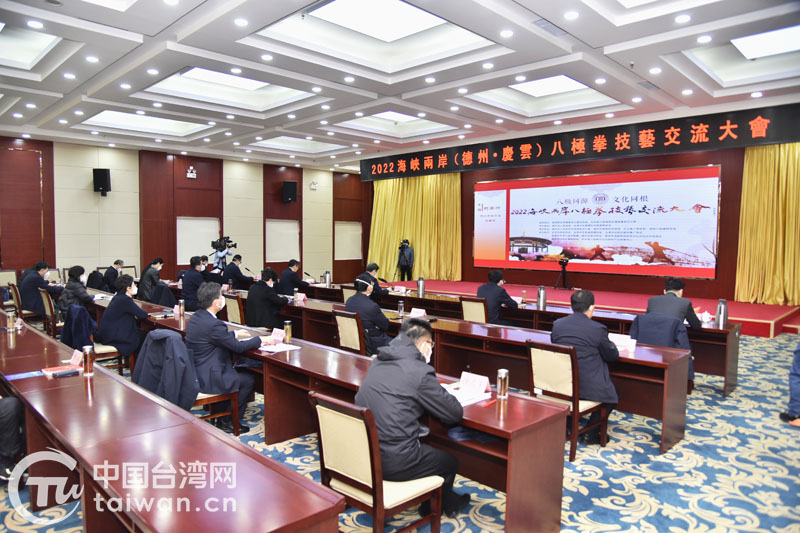 中國臺灣網12月20日訊 近日,2022海峽兩岸(德州·慶云)八極拳技藝交流大會在德州舉行。本次大會以“八極同源、文化同根”為主題,設德州主會場和14個分會場,海峽兩岸千余名八極拳習練者云端切磋技藝,共話中華武術情緣。