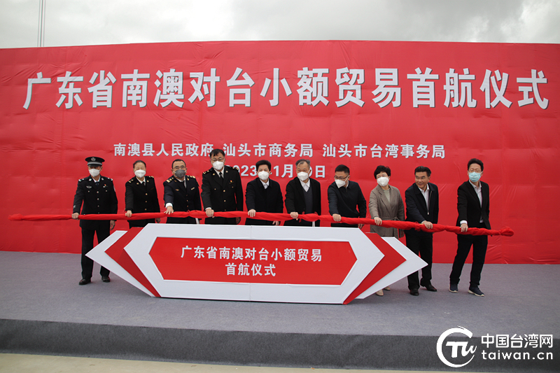 當(dāng)天上午,南澳縣政府、汕頭市商務(wù)局、汕頭市臺灣事務(wù)局聯(lián)合在南澳前江對臺小額貿(mào)易點(diǎn)舉辦對臺小額貿(mào)易首航儀式,汕頭市副市長彭聰恩、汕頭海關(guān)副關(guān)長王俊、廣東省臺辦二級巡視員肖南以及汕頭海關(guān)、海事、邊檢、汕頭市臺辦、汕頭市商務(wù)局、南澳縣有關(guān)負(fù)責(zé)同志出席啟動儀式,并為南澳對臺小額貿(mào)易首航啟動推桿。