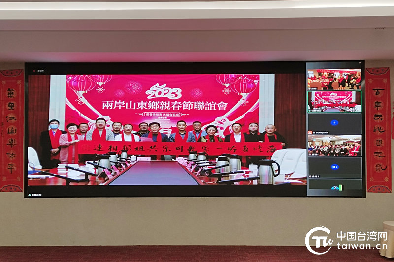 中國臺灣網(wǎng)1月15日訊 海峽難隔鴻雁,歲月不改人心。為弘揚中華傳統(tǒng)文化,促進兩岸同胞心靈契合,1月14日農(nóng)歷小年,山東省臺屬聯(lián)誼會、濟南市臺屬聯(lián)誼會、日照市臺屬聯(lián)誼會與臺灣山東同鄉(xiāng)會共同舉辦了“迎春親朋聚 送福合家歡”兩岸山東鄉(xiāng)親春節(jié)聯(lián)誼會,為兩岸鄉(xiāng)親提供了“敘親情、聯(lián)鄉(xiāng)誼,謀和平、話發(fā)展”的平臺。濟南、日照市臺屬聯(lián)誼會代表和臺灣山東同鄉(xiāng)會、各縣市山東同鄉(xiāng)會負(fù)責(zé)人及山東日照同鄉(xiāng)會代表240余人,分別在濟南、日照、臺北三地活動現(xiàn)場,通過視頻連線的方式參加了聯(lián)誼活動,共同欣賞歌舞表演、共慶中華民族傳統(tǒng)節(jié)日新春佳節(jié)。