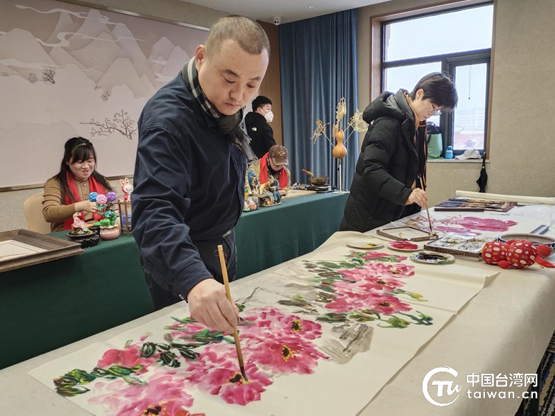 書畫創(chuàng)作現(xiàn)場筆走龍蛇、大氣溫婉,描摩節(jié)日盛景和藝術(shù)家心中愿景,為兩岸同胞增進認(rèn)同、融洽感情、弘揚中華文化架起一座連心橋。