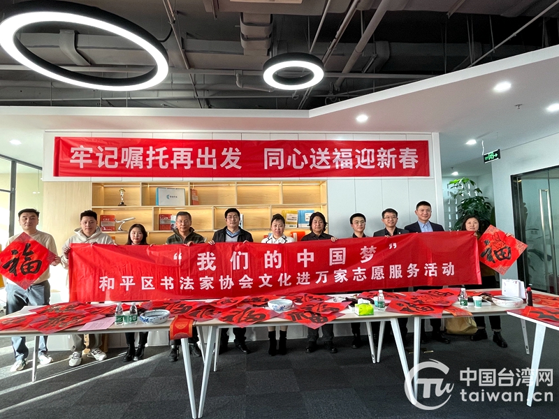 中國臺灣網(wǎng)1月20日訊 天津市和平區(qū)近日舉辦“兩岸一家親 共慶幸福年”臺胞迎新春聯(lián)誼活動,在區(qū)臺胞臺青臺屬與和平區(qū)社會各界群眾一起通過寫春聯(lián)送福字來表達(dá)迎接新年的好心情,沉浸式感受中華傳統(tǒng)文化的魅力。
