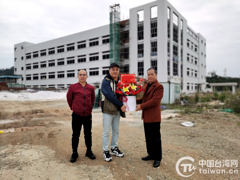 防城港市臺辦到東興市偉立紡織品有限公司了解新建廠房情況,并送上祝福(圖片來源:廣西防城港市臺辦)