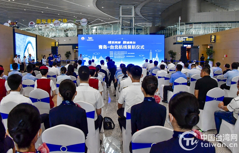 中國臺灣網6月19日訊 近日,以“情系兩岸 融通青臺”為主題的青島-臺北航線復航儀式在青島膠東國際機場隆重舉辦。這標志著三年疫情后青臺兩地正式恢復直航。