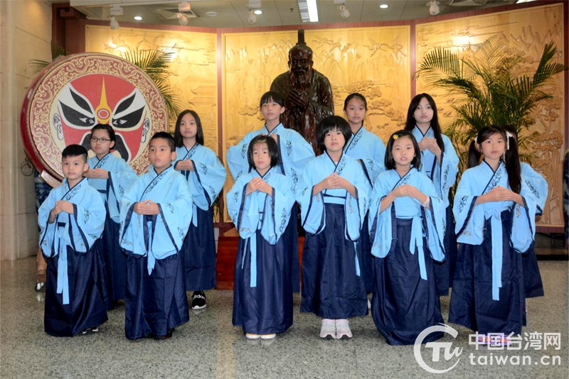 臺灣學生和家長們首先參加了開蒙禮儀式,法圣賢正衣冠、敬先賢拜孔子、點朱砂啟童智、擊響鼓明遠志,研習中華傳統禮儀文化。