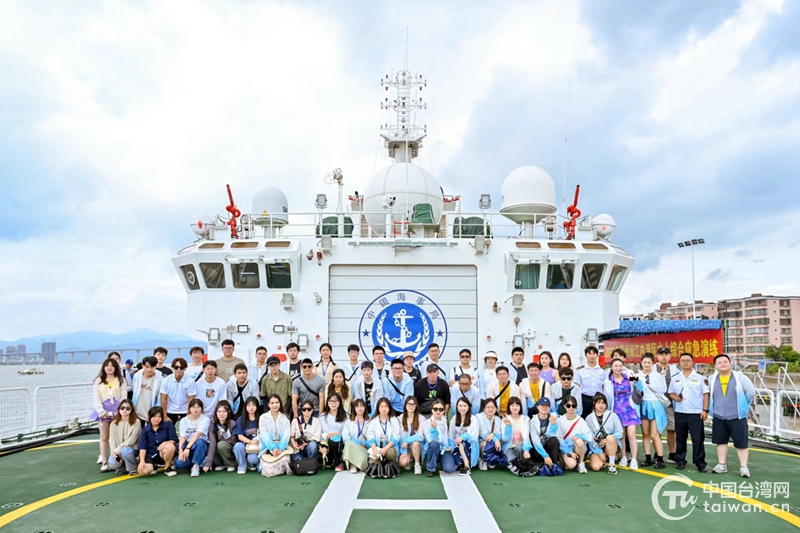 營員們在海上巡航救助船上合影(圖片來源:福建省臺聯)