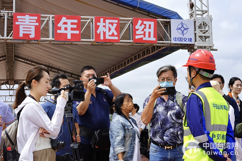 兩岸媒體人采訪平陸運河青年樞紐建設工程項目負責人(圖片來源:廣西臺辦)