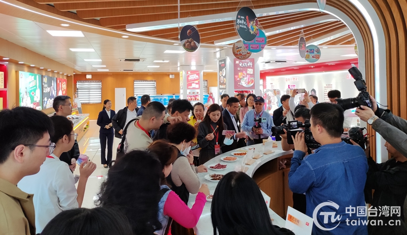 兩岸媒體人在展廳品嘗雙匯食品(河南省臺(tái)辦供圖)