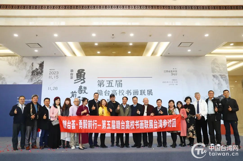 中國臺灣網11月15日訊 今天上午,“贛臺薈·勇毅前行——第五屆贛臺高校書畫聯展”在江西省美術館開幕。贛臺兩地共同主辦單位的代表和專程來贛交流的臺灣嘉賓,以及江西省內書畫藝術家、部分高校師生代表、新聞媒體記者等共100余人出席開幕式。