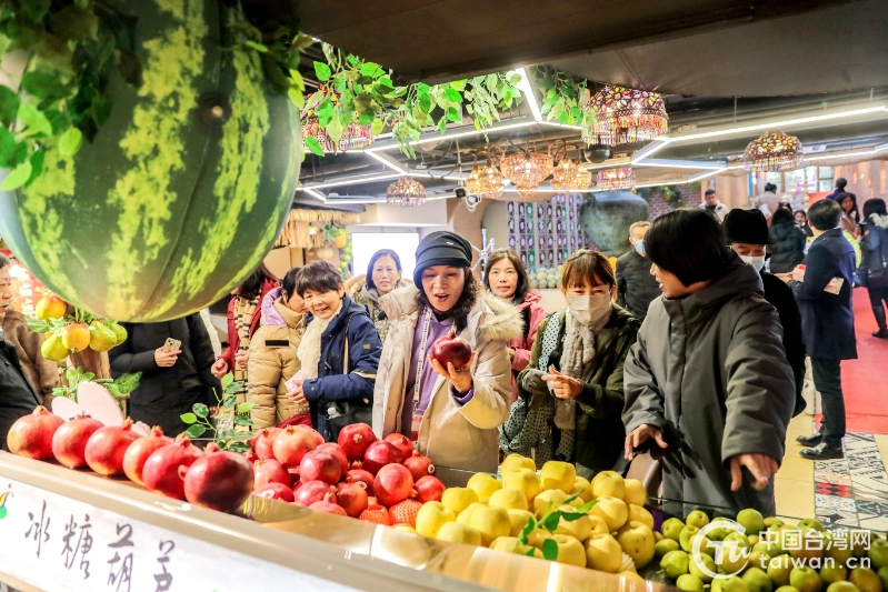 臺灣商業總會女企業家參訪團在大巴扎景區水果巴扎參觀(新疆臺辦供圖)