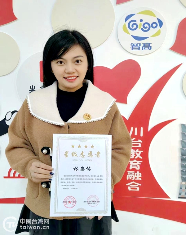 林姿佑獲成都金牛區“四星級志愿者”稱號(成都市金牛區臺辦供圖)