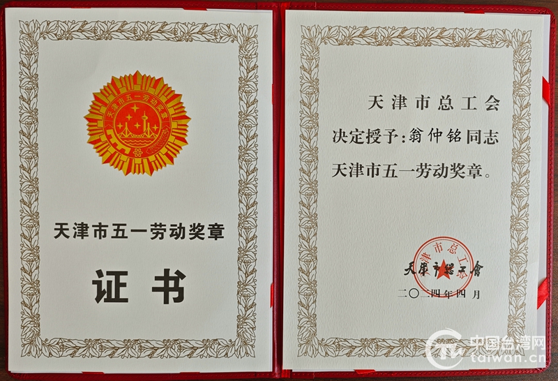 臺(tái)胞翁仲銘榮獲2024年天津市五一勞動(dòng)獎(jiǎng)?wù)?/h1>