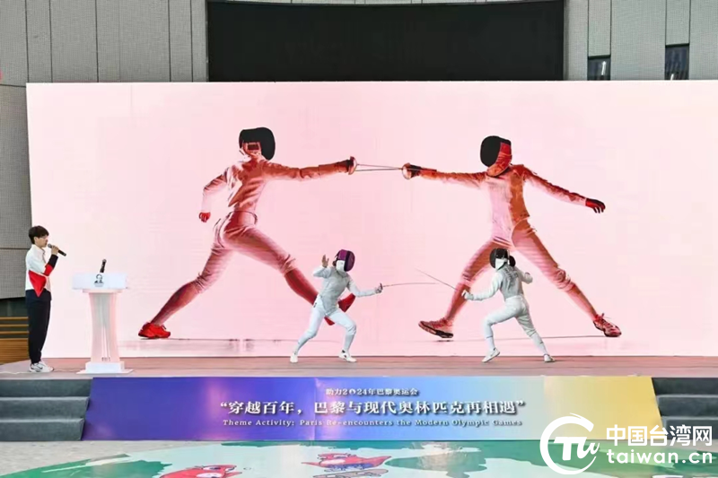 “穿越百年,巴黎與現代奧林匹克再相遇”主題特別活動在天津市自行車擊劍運動管理中心的女子擊劍隊員們的精彩展示中拉開帷幕。(中國臺灣網發)