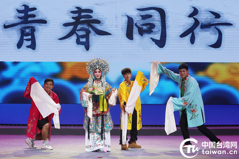 兩岸青年在海峽兩岸(泰州)梅蘭芳藝術文化周開幕上表演自創潮戲曲《戲說泰州》。(中國臺灣網發)