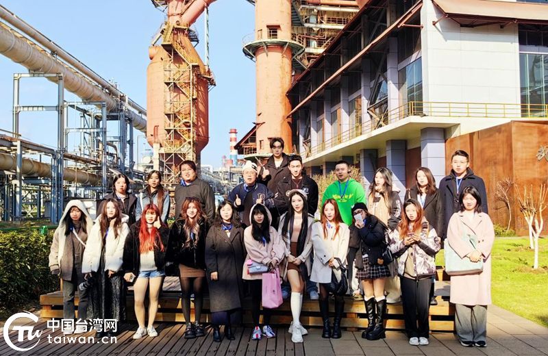 臺灣青年自媒體博主一行在武鋼一號高爐國家工業(yè)遺址公園合影。(中國臺灣網(wǎng)發(fā))