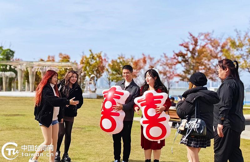 臺灣青年為剛登記的年輕夫妻送上祝福。(中國臺灣網(wǎng)發(fā))