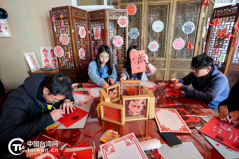 臺灣青年在學習剪紙。(中國臺灣網發)