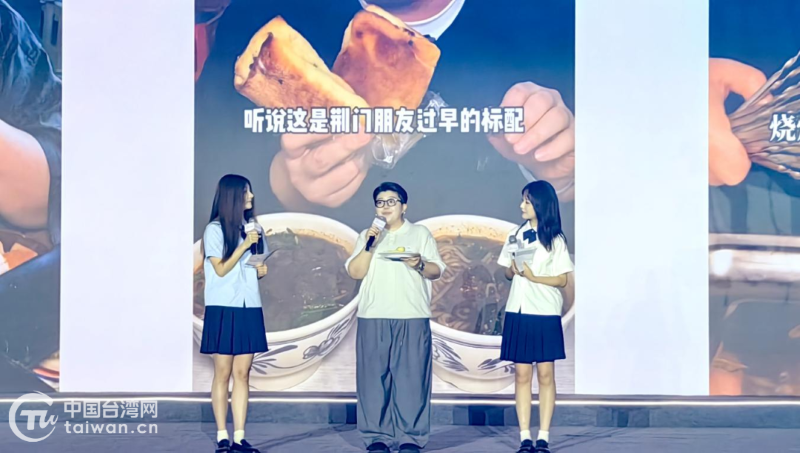 臺灣“90后”短視頻博主曾馨卉(中間)分享美食故事。(中國臺灣網發)