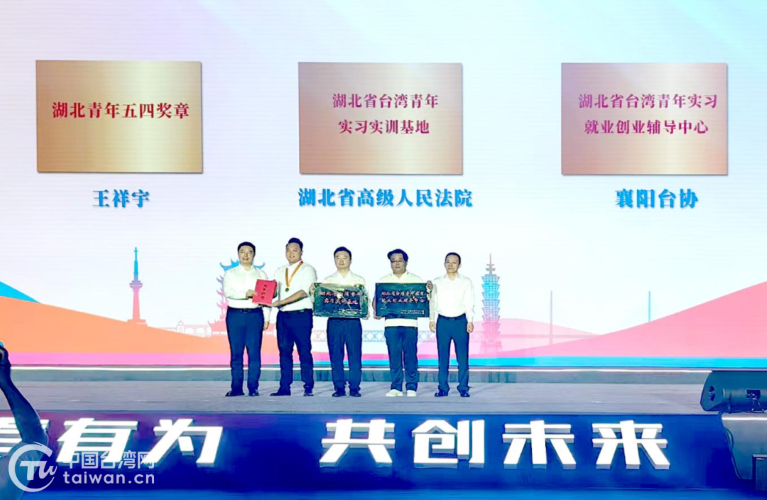 現場舉行頒授儀式,為王祥宇頒授“湖北省五四青年獎章”,為湖北省高級人民法院及襄陽臺協分別頒授“湖北省臺灣青年實習實訓基地”“湖北省臺灣青年實習就業輔導中心”牌匾。