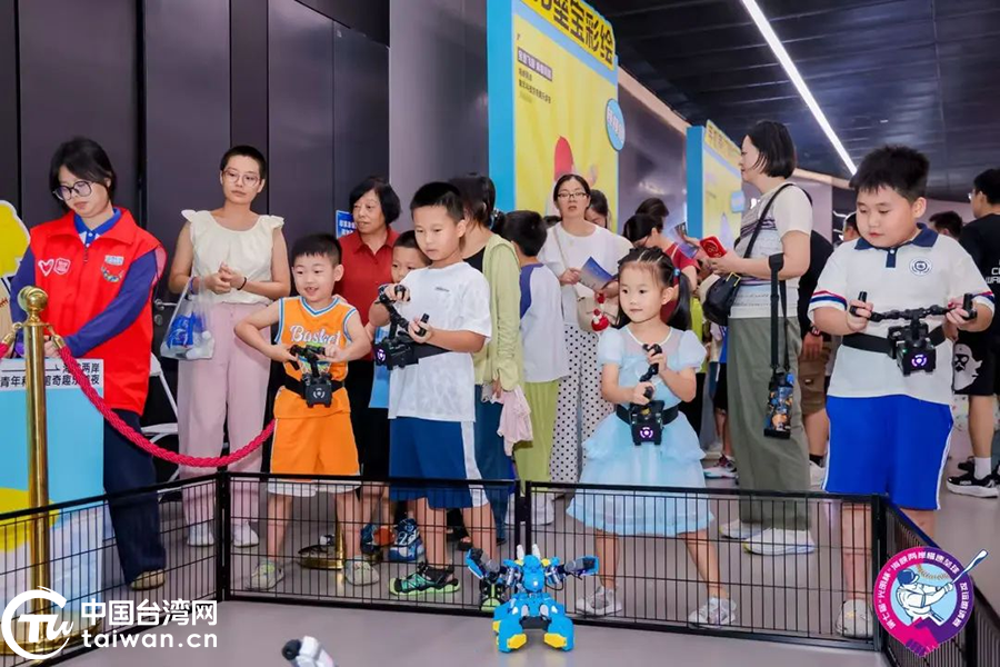在寶壘影院區(qū),臺灣同胞們在3D影院、4D影院、巨幕影院等沉浸式觀看《北極冰凍星球》《藍(lán)鯨》等特效影片。影片通過智能科技以及前沿視聽技術(shù),在大銀幕上將太空、自然、生命科學(xué)等領(lǐng)域的國內(nèi)外珍貴素材細(xì)致還原,再現(xiàn)客觀世界豐富、艷麗的色彩,為臺胞們帶來細(xì)膩而又震撼的高科技特效視聽體驗(yàn)。在科技館一樓國潮寶壘區(qū)現(xiàn)場,機(jī)器小狗身披馬甲“舞獅”,與臺胞們萌態(tài)互動。它們或趴伏站臺、或行走跳躍,行動憨態(tài)可掬且靈活。現(xiàn)場還有纏花、漢服、漆扇染色、川劇變臉等多項(xiàng)非遺體驗(yàn)項(xiàng)目,讓大家充分感受到非遺文化的魅力。