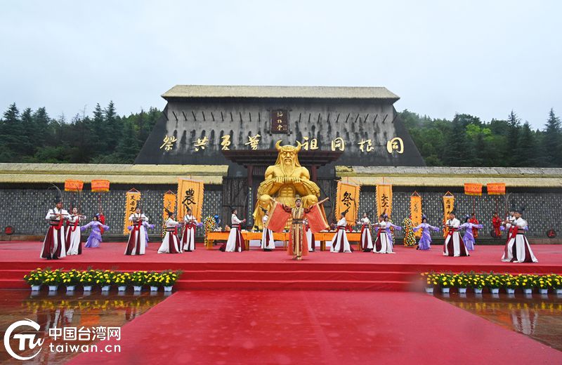 在莊重的祭樂聲中,陜西省臺辦副主任王政君,寶雞市政協(xié)副主席李軍科,寶雞市渭濱區(qū)人民政府代區(qū)長梁丹軍,中華神農(nóng)大帝協(xié)進(jìn)會理事長、臺中國農(nóng)宮主任委員李火炎,海峽兩岸炎帝神農(nóng)文化交流協(xié)會理事長管志明,東莞臺商子弟學(xué)校副董事長吳鐵雄向炎帝塑像敬獻(xiàn)了花籃。隨后,主祭人敬香、民間祭祀、酒祭、佾舞告祭等典禮儀式一一進(jìn)行。寶雞市渭濱區(qū)人民政府代區(qū)長梁丹軍恭讀祭文,全體人員向始祖炎帝行三鞠躬禮。典禮在鏗鏘高歌、彩鳳游天中落下帷幕。