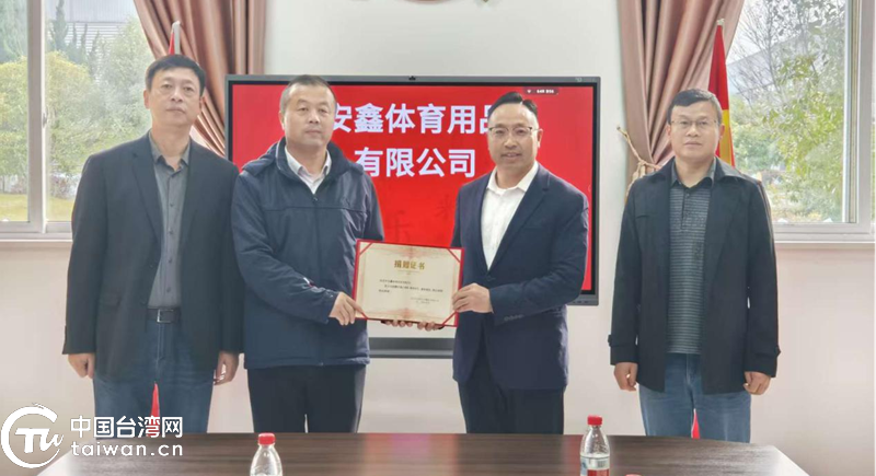 安慶市安鑫體育用品有限公司收到捐贈證書。(中國臺灣網發)