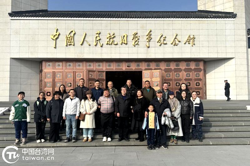 臺胞在中國人民抗日戰爭紀念館前合影。(中國臺灣網發)