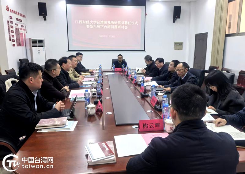 中國臺(tái)灣網(wǎng)1月4日訊 為進(jìn)一步提升江西省涉臺(tái)研究水平,在江西省臺(tái)辦的大力支持下,12月29日,江西財(cái)經(jīng)大學(xué)臺(tái)灣研究所研究員聘任儀式暨新形勢(shì)下臺(tái)灣問題研討會(huì)在南昌召開,現(xiàn)場(chǎng)為研究員頒發(fā)聘書,組織大家開展研討交流。江西省臺(tái)辦二級(jí)巡視員江雷,江西財(cái)經(jīng)大學(xué)黨委常委、副校長(zhǎng)賀丹君出席。