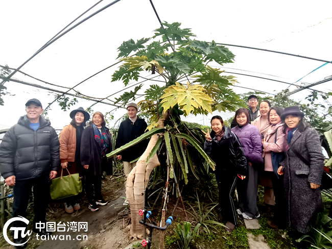 調(diào)研團(tuán)在尚青園精致農(nóng)業(yè)熱帶水果種植園合影。(中國(guó)臺(tái)灣網(wǎng)發(fā))