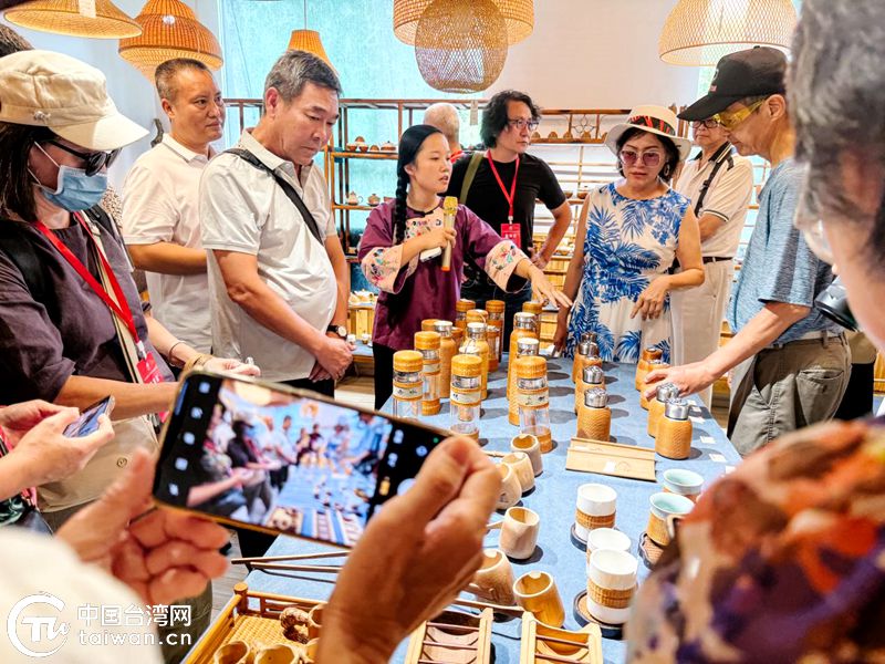臺(tái)灣嘉賓參觀竹制品展示。(中國(guó)臺(tái)灣網(wǎng)發(fā))