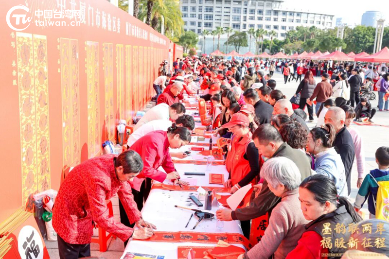 2026海峽兩岸(海滄)百名書法家書春送福聯袂“福傳海滄·閱見文明”福袋迎新活動在廈門海滄市民廣場拉開帷幕。(中國臺灣網發)