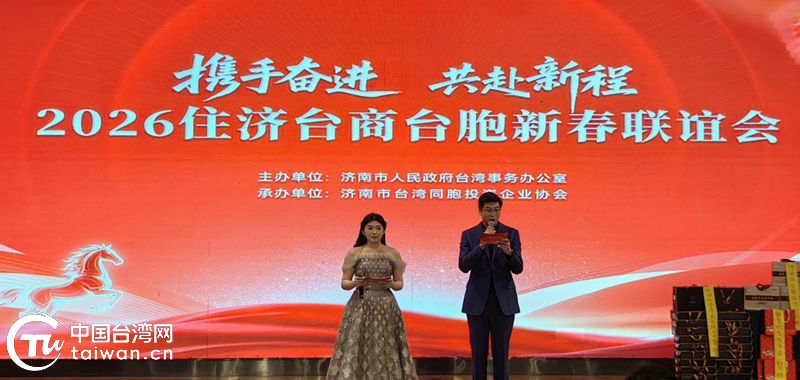 中國臺灣網(wǎng)1月28日訊 1月24日,由濟(jì)南市臺辦主辦、濟(jì)南市臺協(xié)會承辦的“攜手奮進(jìn) 共赴新程”2026住濟(jì)臺商臺胞新春聯(lián)誼會成功舉辦。山東省臺辦一級巡視員王清玉,濟(jì)南市原副市長、市臺協(xié)會常務(wù)副會長尹清忠,濟(jì)南市臺辦主任趙博、副主任李學(xué)忠,濟(jì)南臺協(xié)會會長王克璋出席,200余位住濟(jì)臺商臺胞參加活動。