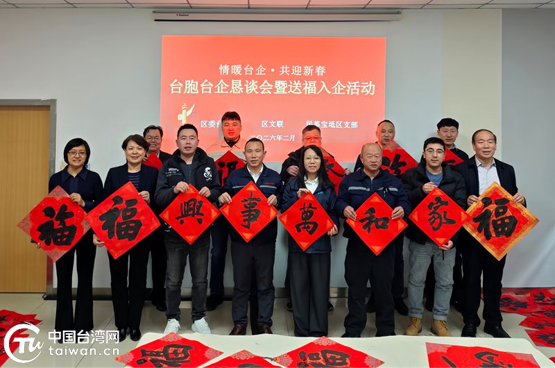 中國臺灣網2月6日訊 2月4日,天津市寶坻區舉辦臺胞臺企懇談會,并開展送福入企活動。聯恒工業、林德英利、英利模具、法藍克玻璃、翔太水族等臺資企業負責人以及臺胞代表等參加活動,寶坻區委常委劉蘭鳳出席活動。