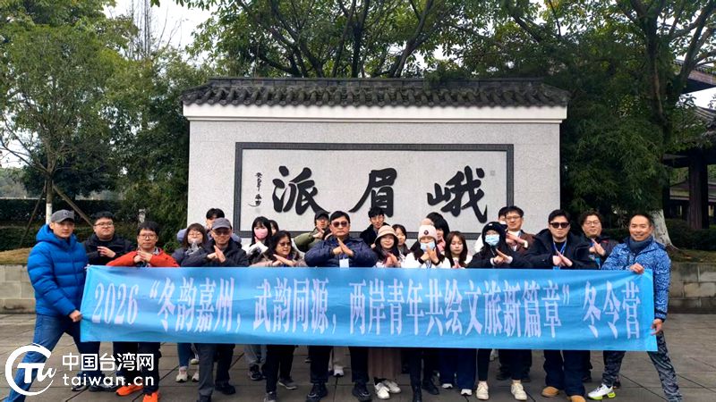 中國臺灣網2月9日訊 近日,2026“冬韻嘉州·武韻同源——兩岸青年共繪文旅新篇”冬令營活動在樂山市舉辦。此次活動以武術為媒、以文化為紐帶,30名來自兩岸的青年學子跨越海峽,相聚于巴蜀大地,展開為期八天的文化探尋之旅。