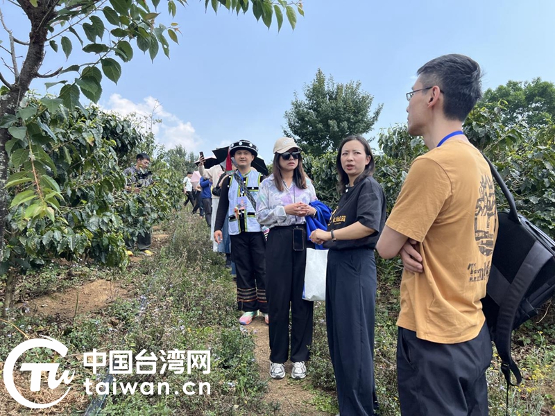在滄源佤族自治縣的咖啡種植莊園,采訪團(tuán)一行向莊園合伙人了解其咖啡種植、生產(chǎn)加工情況。(中國臺灣網(wǎng)記者 劉琳 攝)