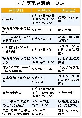 5月29日上午8點半,2010聯發嘉庚杯敬賢杯海峽兩岸龍舟賽將在集美龍舟池激情開賽。
