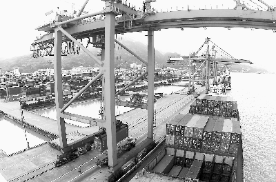 19日,一艘往返兩岸的萬噸級集裝箱貨輪平穩(wěn)停靠在福州馬尾港。據福州邊檢站統(tǒng)計數據顯示,今年上半年,福州馬尾港出入的閩臺貨運直航集裝箱船舶共467艘次,比去年同期增長26%。記者 張永定 通訊員 王鵬 攝