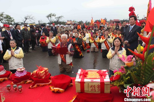 中午13時許,安座典禮開始,臺灣地區領導人馬英九、臺中市長胡志強、大甲鎮瀾宮董事長顏清標以及湄洲祖廟董事長林金榜等人出席典禮,向媽祖神像上香,敬獻祭典物品。馬英九在儀式結束后表示,媽祖在臺擁有眾多信眾,兩岸媽祖信眾交流對兩岸相互了解、兩岸和平都有很大的貢獻。