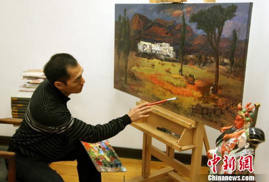 中新網(wǎng)高雄2月13日電(記者陳立宇)在臺灣高雄的畫家群體中,46歲的楊騰集是一個比較特別的人物,因為他曾在北京的中央美術(shù)學院深造,師承靳尚誼、孫為民、楊飛云、朝戈、戴士和等油畫名家。