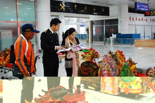據(jù)了解,3月7日至8日,由金門縣政府組織的1200余名臺(tái)灣信眾分別通過廈金航線、泉金航線入境,前往漳州、泉州等地寺廟進(jìn)香,并在當(dāng)?shù)嘏e行一系列的踩街、祭典儀式。由于儀式需要,該批臺(tái)灣進(jìn)香團(tuán)入境時(shí)攜帶神轎28頂,神將46尊,神器124件。
