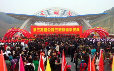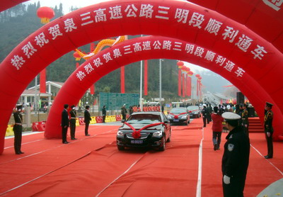 12月25日,泉三高速公路三明段通車慶典在福建三明舉行。泉三高速公路(泉州至三明)全長265公里,是福建省規劃建設“三縱四橫”高速公路網的重要組成部分,全線開通后將縮短福建內陸山區與沿海的時空距離。三明段長約159公里,采用雙向四車道高速公路標準建設。新華社發(盧立杰 攝)