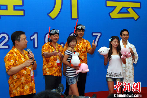 9月7日,來自臺(tái)灣屏東縣觀光科、恒春觀光產(chǎn)業(yè)聯(lián)盟等臺(tái)灣人士以熱帶風(fēng)情廈門展示墾丁風(fēng)。當(dāng)日,來自臺(tái)灣、西藏、新疆等九地旅游推介會(huì)在廈門舉辦。中新社發(fā) 張麗君 攝