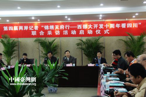 10月18日上午,第四屆兩岸記者“錦繡天府行——西部大開(kāi)發(fā)十周年看四川”聯(lián)合采訪活動(dòng)在成都市正式啟動(dòng)。(中國(guó)臺(tái)灣網(wǎng) 馬迪 攝)