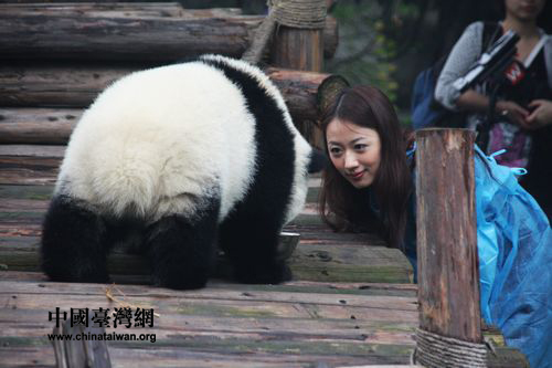 中國臺灣網(wǎng)10月20日成都消息 新近當(dāng)選“熊貓守護(hù)使”的臺大美女模特王郁文在走馬上任之初便活動不斷。19日上午,王郁文出現(xiàn)在成都大熊貓繁育研究基地內(nèi)部,與熊貓來了一次“親密接觸”。