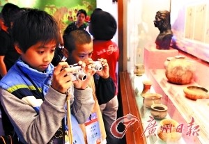 來自臺灣的兒童對廣州新石器時期的出土文物十分感興趣。 記者陳安 攝