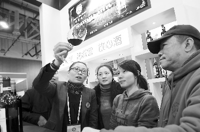 由中國商業聯合會、廈門貿發局主辦的首屆海峽西岸中外名酒展日前在廈門舉行,來自兩岸三地的500個廠家參展,展品包括白酒、葡萄酒、保健酒、酒飲器皿等。圖為幾位臺商在展會上了解葡萄酒的品質,洽談業務。(記者 關建東 攝)
